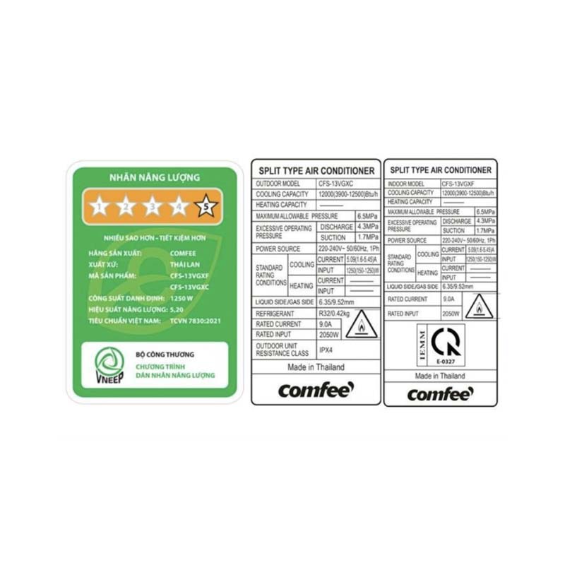 Máy lạnh Comfee CFS-13VGX sở hữu công suất làm lạnh 12.000 Btu (1.5 Hp), phù hợp với các không gian có diện tích dưới 20m² như: