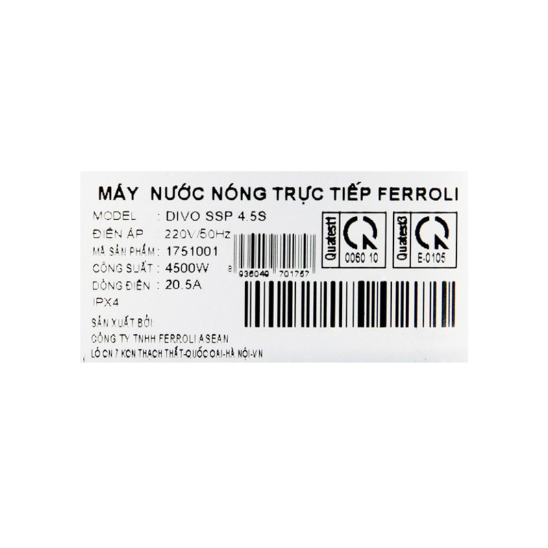 Máy nước nóng Ferroli Divo SSP 4.5S 4500W là sự kết hợp hoàn hảo giữa thiết kế tinh tế, tính năng an toàn và hiệu suất sử dụng vượt trội. Với công nghệ làm nóng trực tiếp, bơm trợ lực, cầu dao chống rò điện ELCB, vỏ chống thấm chuẩn IPX4 và cảm biến nhiệt tự động ngắt điện, sản phẩm này mang lại cho bạn trải nghiệm sử dụng an toàn, tiện lợi và hiệu quả. Đặc biệt, vòi sen mạ Crom sang trọng cùng với các chế độ phun tiện lợi sẽ khiến mỗi lần tắm trở thành một trải nghiệm thư giãn tuyệt vời. Với tất cả những ưu điểm này, máy nước nóng Ferroli Divo SSP chắc chắn sẽ là lựa chọn tuyệt vời cho mọi gia đình.