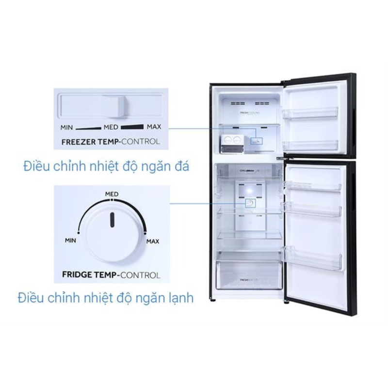 - Ngăn đá (91 lít): Đáp ứng tốt nhu cầu dự trữ thực phẩm đông lạnh. Cũng như làm đá viên hay bảo quản kem và các món tráng miệng.