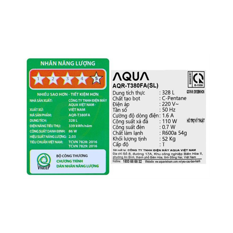 Mô tả thông số Tủ Lạnh Aqua AQR-T380FA(SL)