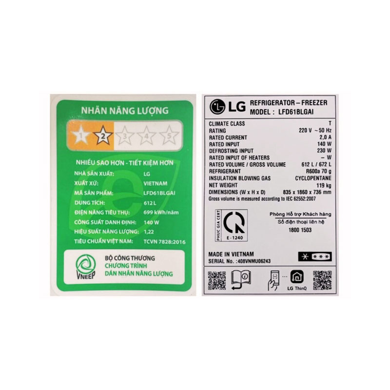 2. Tủ lạnh LG LFD61BLGAI tiết kiệm điện
