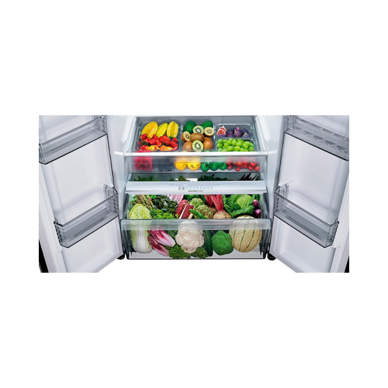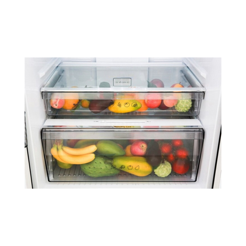 Tủ được trang bị ngăn rau quả kép kiểm soát độ ẩm, giúp duy trì môi trường lý tưởng để bảo quản rau củ và trái cây. Dung tích lớn cùng khả năng giữ ẩm vượt trội đảm bảo rau củ luôn mọng nước, tươi ngon như mới mua về.