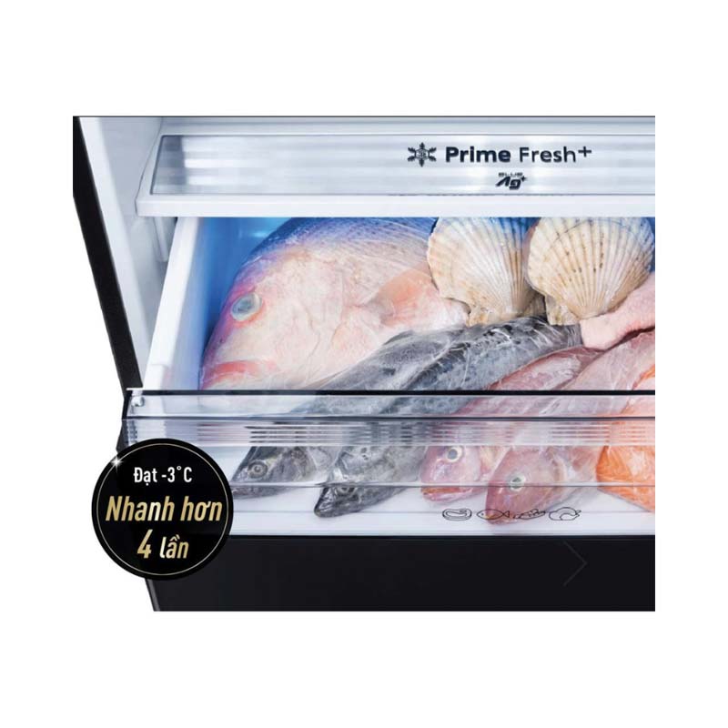 Tủ lạnh được trang bị ngăn cấp đông mềm Prime Fresh+ giữ nhiệt độ ổn định ở mức -3°C. Ngăn giúp bảo quản thịt cá và thực phẩm tươi sống mà không bị đông đá. Nhờ đó, bạn có thể nấu ăn ngay sau khi lấy ra. Giúp bạn tiết kiệm thời gian rã đông và giữ trọn hương vị tự nhiên.