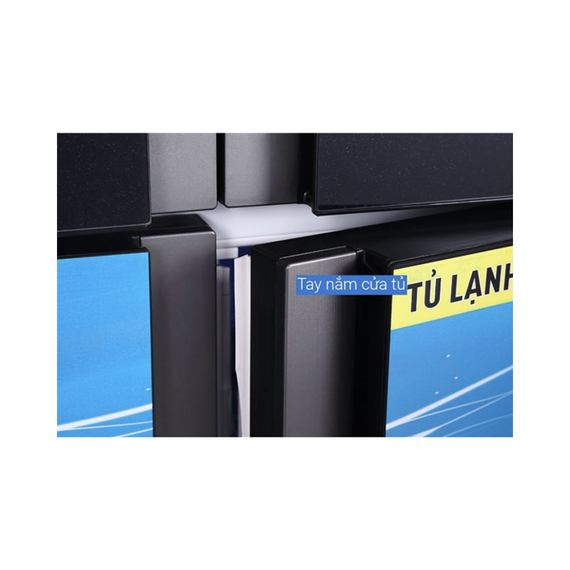 Sản phẩm gây ấn tượng mạnh nhờ thiết kế mặt kính đen bóng sang trọng. Thiết kế không viền, dễ lau chùi và tăng thẩm mỹ cho gian bếp. Tay cầm cong mềm mại, dễ cầm nắm và thao tác mở – đóng tủ nhẹ nhàng. Bố trí cửa 4 cánh cũng giúp tối ưu hóa không gian lưu trữ, hạn chế thất thoát hơi lạnh khi mở tủ.